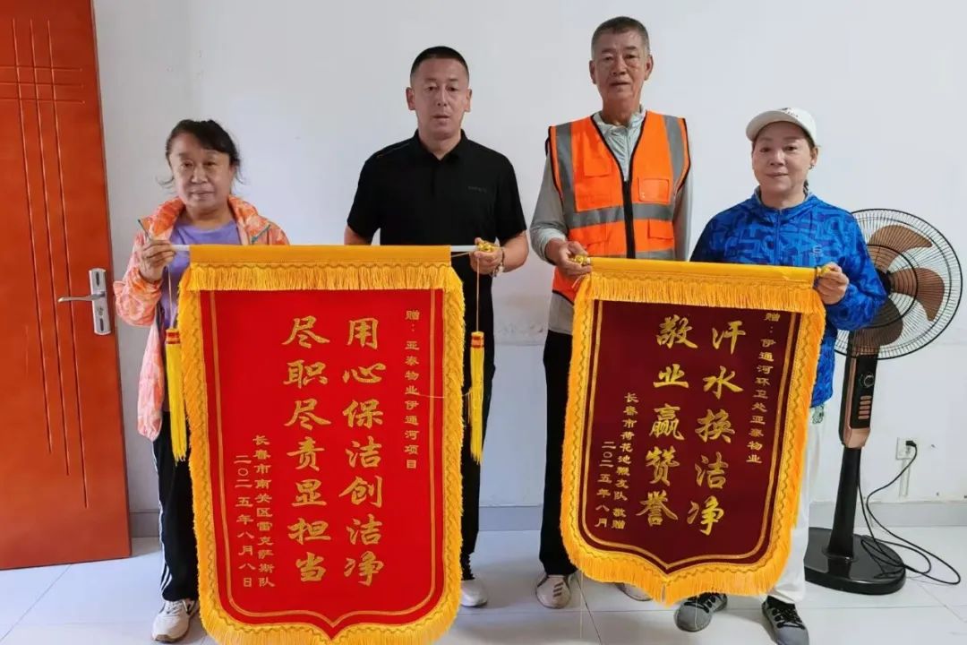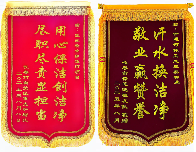一面锦旗,一份认可;一份责任,一路坚守。亚泰物业伊通河项目收获两份沉甸甸的荣誉——两面由市民专程送来的锦旗。“用心保洁创洁净,尽职尽责显担当”“汗水换洁净,敬业赢赞誉”这些烫金大字,不仅代表了市民对我们服务工作的高度认可,更是亚泰物业坚守社会责任、彰显企业担当的真实写照。