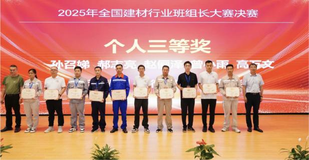 2025 年 9 月 15 日,2025 年全国建材行业班组长大赛在浙江富阳圆满落幕。经过三天紧张激烈的角逐,亚泰集团参赛选手在众多行业精英中脱颖而出,揽获大赛各项荣誉,成为本届赛事中备受瞩目的企业之一。其中亚泰建材双阳公司的赵俪泽斩获大赛个人三等奖,另25位选手获得优秀选手奖;亚泰建材伊通公司副总经理孔祥勇获“最佳裁判员”称号;吉林亚泰水泥有限公司荣获含金量极高的团体二等奖;亚泰集团积极配合组委会工作,获颁“优秀组织单位”奖牌,共 5 家单位获此殊荣。