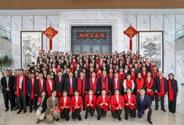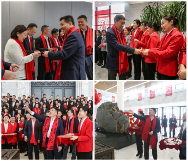 新春团拜活动在集团总部隆重举行。现场披红挂彩,喜庆祥和。陈铁志董事长与总裁刘树森等高管,同来自集团各部门、各产业集团的员工代表欢聚一堂,互致新春问候。大家共同参与了寓意吉祥的“蓄金”仪式,将对新年的美好期盼投入亚泰宝鼎,共同祝愿集团事业蒸蒸日上。陈铁志董事长代表集团领导班子,感谢全体员工的辛勤付出,勉励大家在新的一年里凝心聚力、真抓实干,共同谱写亚泰集团高质量发展新篇章。